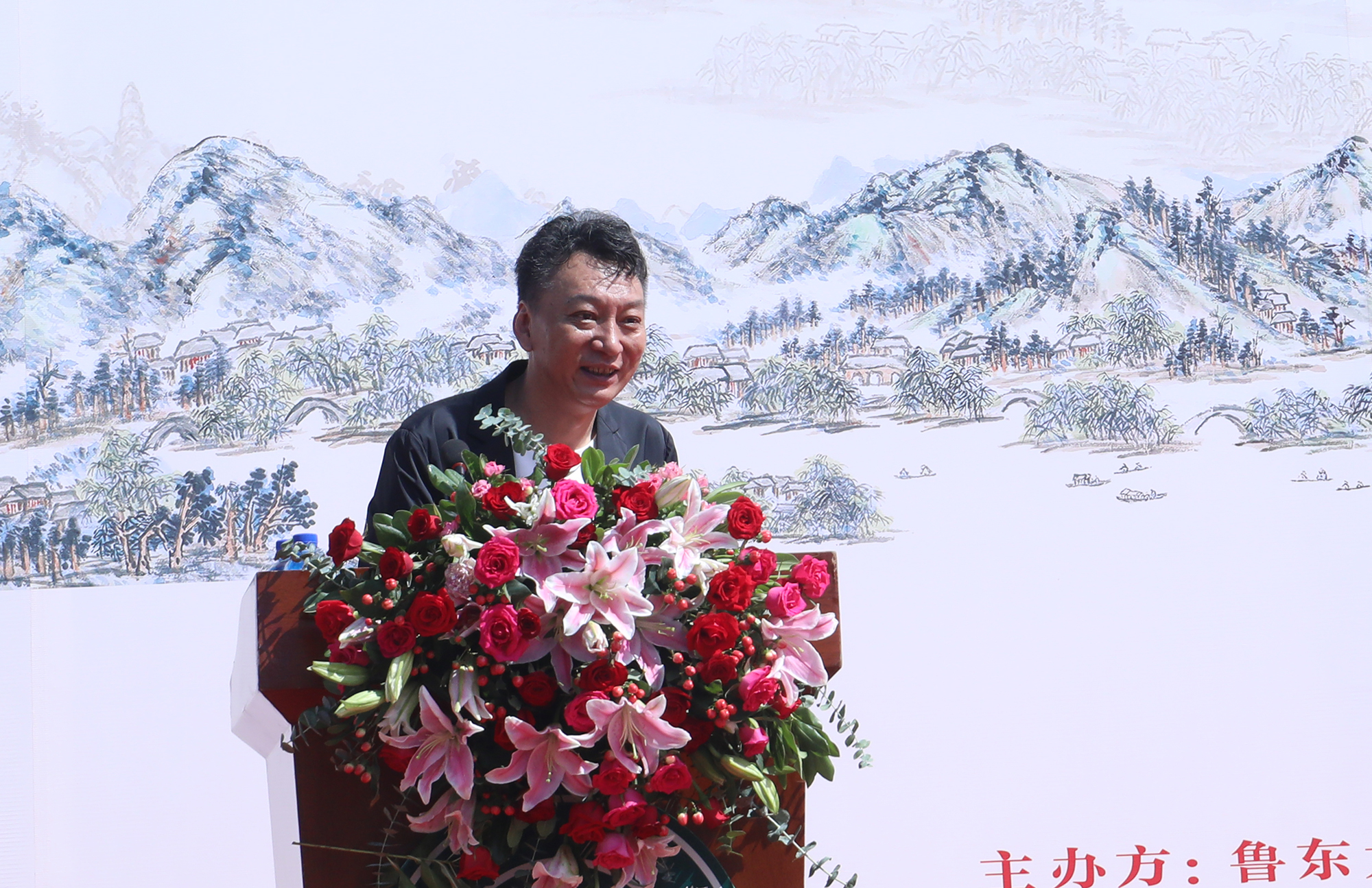 烟台市文联党组书记宋作新在致辞中表示,九十四年来,人杰校灵的鲁东大学,以其深厚的文化底蕴、优良的学术传统和严谨、精益、卓越的质量文化,走出了一条以文化人、以文育人、以文成人的立德树人之路。王帅先生以其心怀故土、造福家乡的深情厚谊和对母亲深沉绵长的爱,感染着我们在座的每一个人。这场展览的文化之美、思想之美、情感之美美不胜收,呈现给我们的不仅是一场文化艺术的饕餮盛宴,更是一位拳拳赤子深刻的人文精神和强烈的使命担当。
