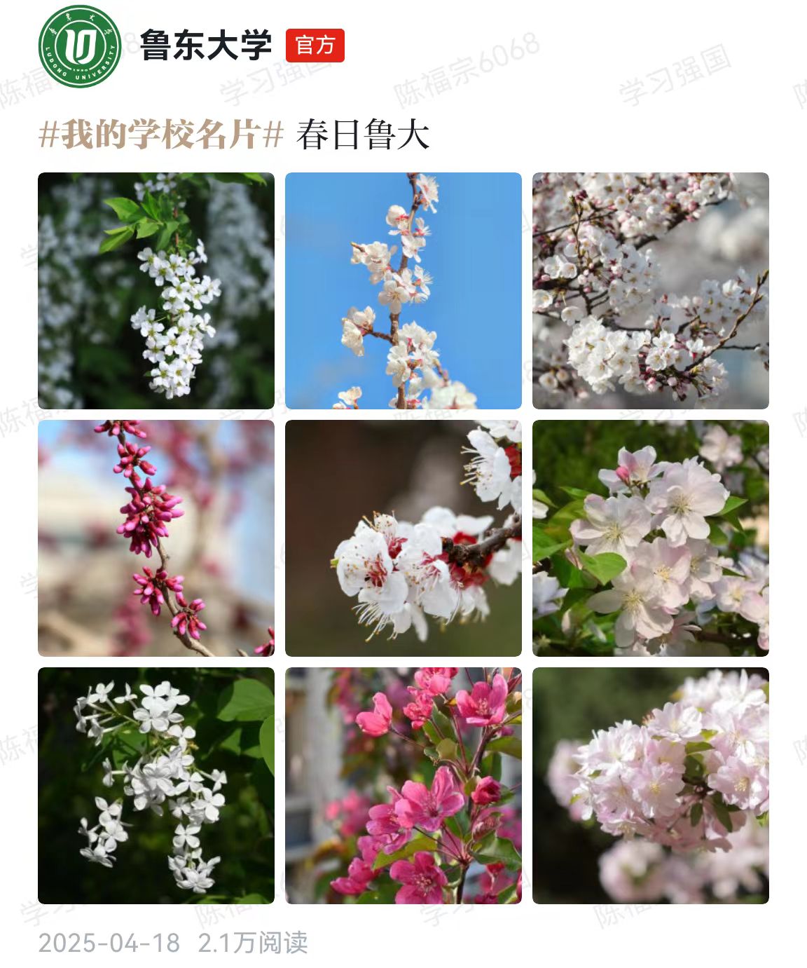 2026年1月,“学习强国”同学汇2025年度评选结果揭晓,我校作品《我的学校名片—春日鲁大》荣获全国2025年度“学习强国”同学汇人气作品。